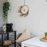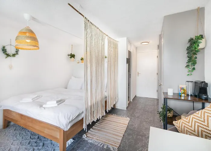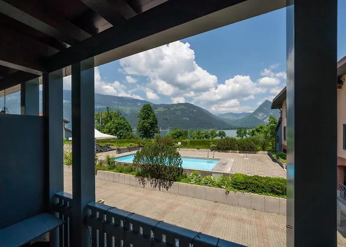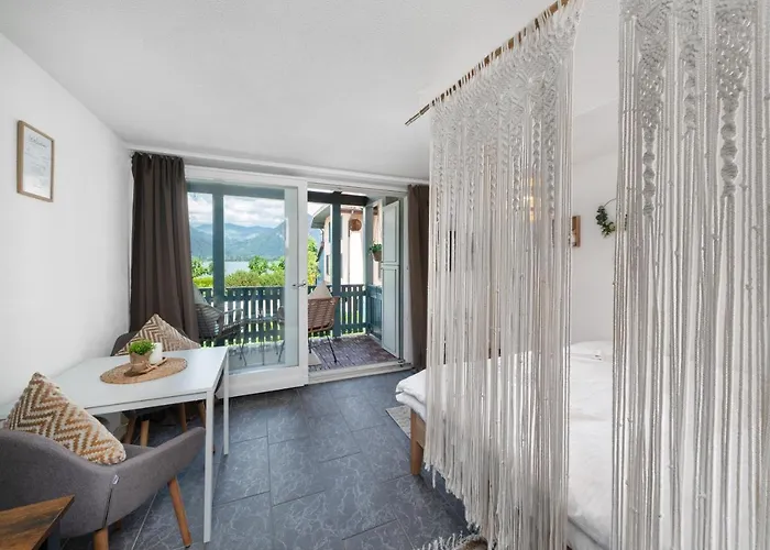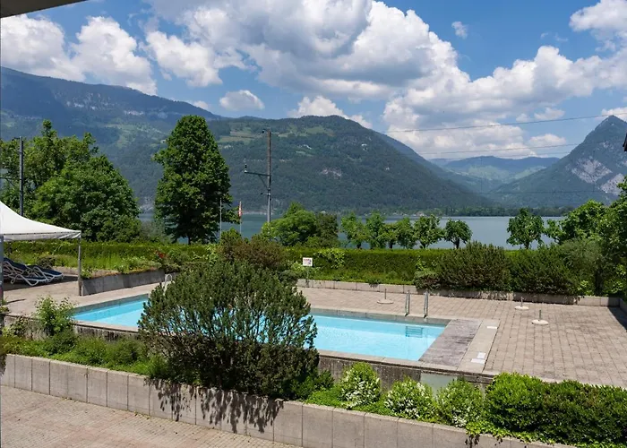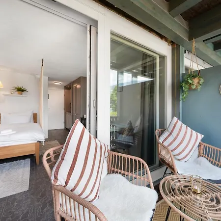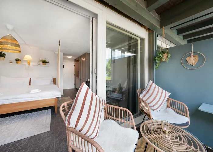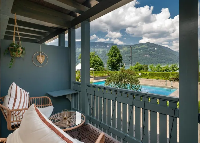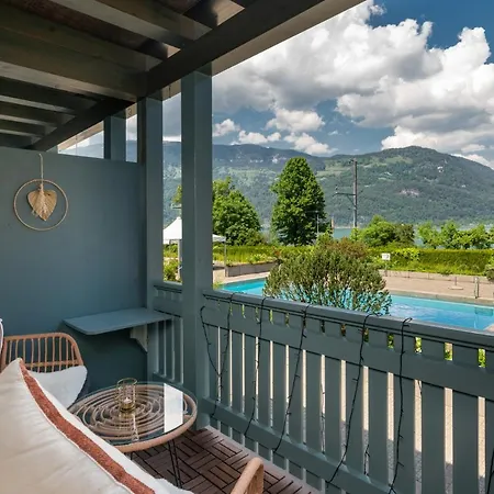 Boho Oase mit direktem Seeblick ferielejlighed ligger 1,9 km fra Weissenau Nature Reserve og tilbyder en privat pool. Indkvarteringen er placeret inden for et 10 minutters kørsel fra Kunsthaus Interlaken.